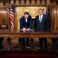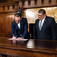 Rep. Matthew R. Gergely joined Gov. Josh Shapiro for the signing of his legislation, multiple initiatives for liquor-licensed establishments, into law on October 21, 2024.