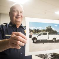 Rep. Ryan Bizzarro joins members of the Belle Valley Fire Department to commemorate their quick-response vehicle on its first day of service.