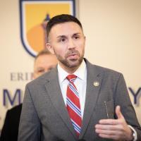 Rep. Ryan Bizzarro, the Majority Chairman of the House Policy Committee, joins Lt. Gov. Austin Davis and others at Erie County Community College to highlight a new blueprint for higher education funding for community colleges and state system universities.