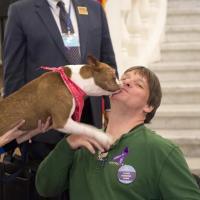 Rep. Ryan Bizzarro attends an Animal Protection Caucus gathering at the state Capitol to show his support for animal protection laws.