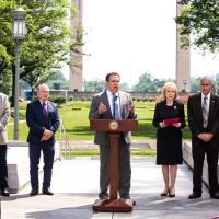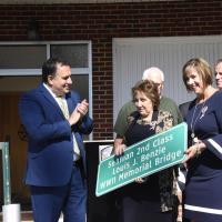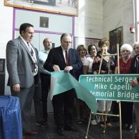 Rep. Frank Burns participates in a ceremony renaming a bridge in the 72nd legislative district as the Alexander Miller Abercrombie Memorial Bridge, a Cambria County resident who was killed in battle during World War II.