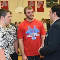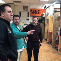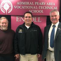 Rep. Frank Burns tours the Admiral Peary Vo-Tech school and discussed several issue relating to educational programs with educators there.