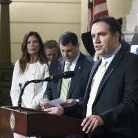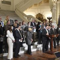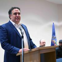 Rep. Frank Burns speaks at a news conference calling on the Altoona-Johnstown Roman Catholic Diocese, which a grand jury determined shielded priests who sexually abused children for decades, to make amends by supporting legislation to lengthen the statute of limitations for such crimes.