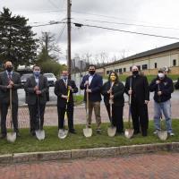 Rep. Frank Burns participates in a groundbreaking ceremony to install a dedicated pedestrian crossing with the help of $50,000 in state funds he secured.