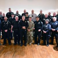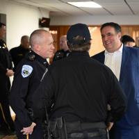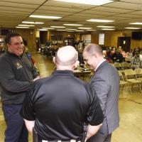 Rep. Frank Burns thanks area law enforcement for the job they do every day to protect the citizens of the 72nd Legislative District by hosting a Law Enforcement Appreciation Day Luncheon, where a member of the clergy blessed the officers and their badges.
