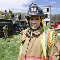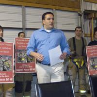 Before suiting up for training exercises at the Cambria County Fire School on April 23, Rep. Burns held a media conference to discuss his House Bill 48, which would provide PHEAA scholarships for fire company, ambulance and rescue squad volunteers.