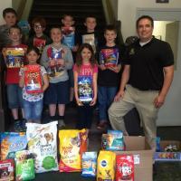 Schools in the 72nd Legislative District again helped make Rep. Burns' annual Pet Food Drive in April a success. Here he is with students on collection day, as the items were gathered for delivery to the Humane Society of Cambria County.