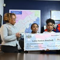 Rep. Cepeda-Freytiz gave a check to Latin Fusion Baseball to celebrate the organization receiving $60,000 in grant funding with her support.