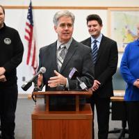Rep. Scott Conklin joins students and coaches to introduce his legislation that would allow public and private high schools to have separate playoffs for their sports teams.