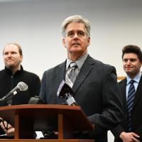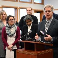 State Rep. Scott Conklin, D-Centre, held a press conference on March 20, 2023 in Patton Township to announce emergeny grant relief for victims of a sinkhole and legislation to help future victims.