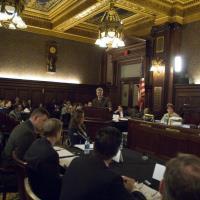Rep. Scott Conklin attends a House Democratic Policy Committee public hearing at the University of Pittsburgh to discuss state police fees for municipalities without local police.
