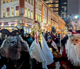 Krampuslauf or “Krampus Parade” is a traditional Austrian parade of the folkloric creature Krampus. Parade-goers dress up as Krampus and march downtown, in a fun, lighthearted twist on Holiday traditions. The parade begins at 7th and Penn and will travel through all three sites of the Holiday Village, offering plenty of opportunities for photos with both children and adults.
