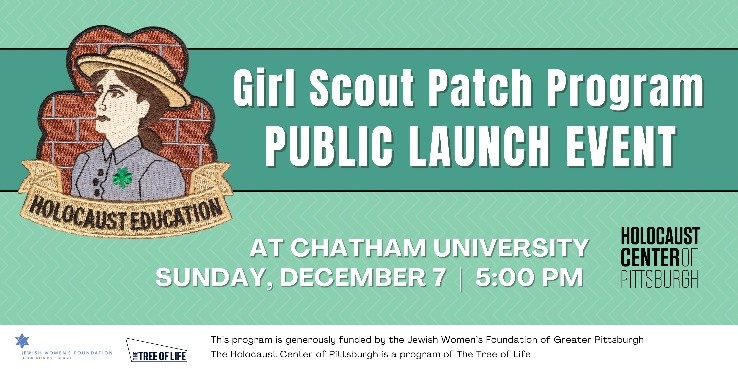 The Holocaust Center of Pittsburgh and local Girl Scout Lily Sassani will host a public launch of the new Holocaust Education Girl Scout Patch. The program will include a short video on the development of the patch, an overview of the stories it highlights, and a Q&A. Supported by the Jewish Women’s Foundation of Greater Pittsburgh, the project aims to educate Scouts about the Holocaust, the role of Girl Guides during World War II, and the importance of standing against discrimination.