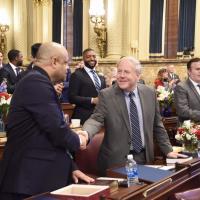 Rep. Bob Freeman, the Democratic Chairman of the Local Government Committee, attends the state budget hearing with the Department of Community and Economic Development to review their fiscal priorities in the 2017-18 state budget.
