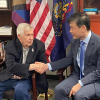 State Rep. Nancy Guenst awarded Ira Bellew the Korean Medal of Peace for his actions during the Korean War.