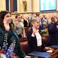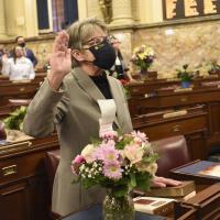 Rep. Nancy Guenst participates in the First Tuesday Ceremony and is sworn in as the state representative from the 152nd legislative district for the 2021-22 legislative session.