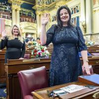 Reps. ELizabeth Fiedler and Liz Hanbidge hosted a press conference at the state capitol with advocates celebrating the signing of their legislation, House Bill 507. This legislation requires medical facilities in Pennsylvania to obtain consent before performing pelvic, prostate or rectal exams on anesthetized patients. After the press conference, they joined Gov. Shapiro for the ceremonial signing of their bill, which is now Act 31 of 2023.