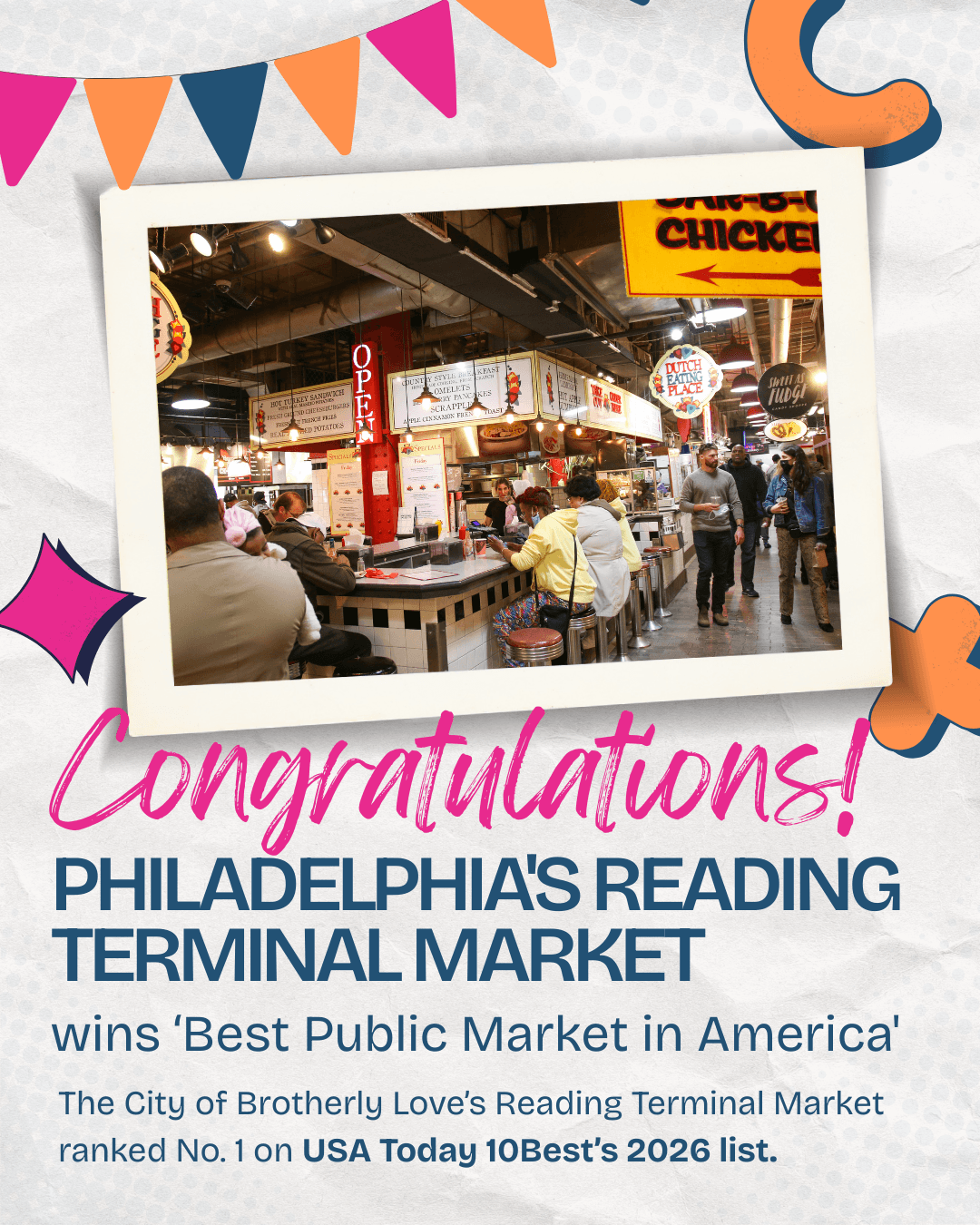 A huge thank you to everyone who voted on USA Today’s 10Best 2026 list, making Reading Terminal Market the winner of Best Public Market in America! I know we all love the Market, and I’m glad it got the national recognition it rightfully deserves.