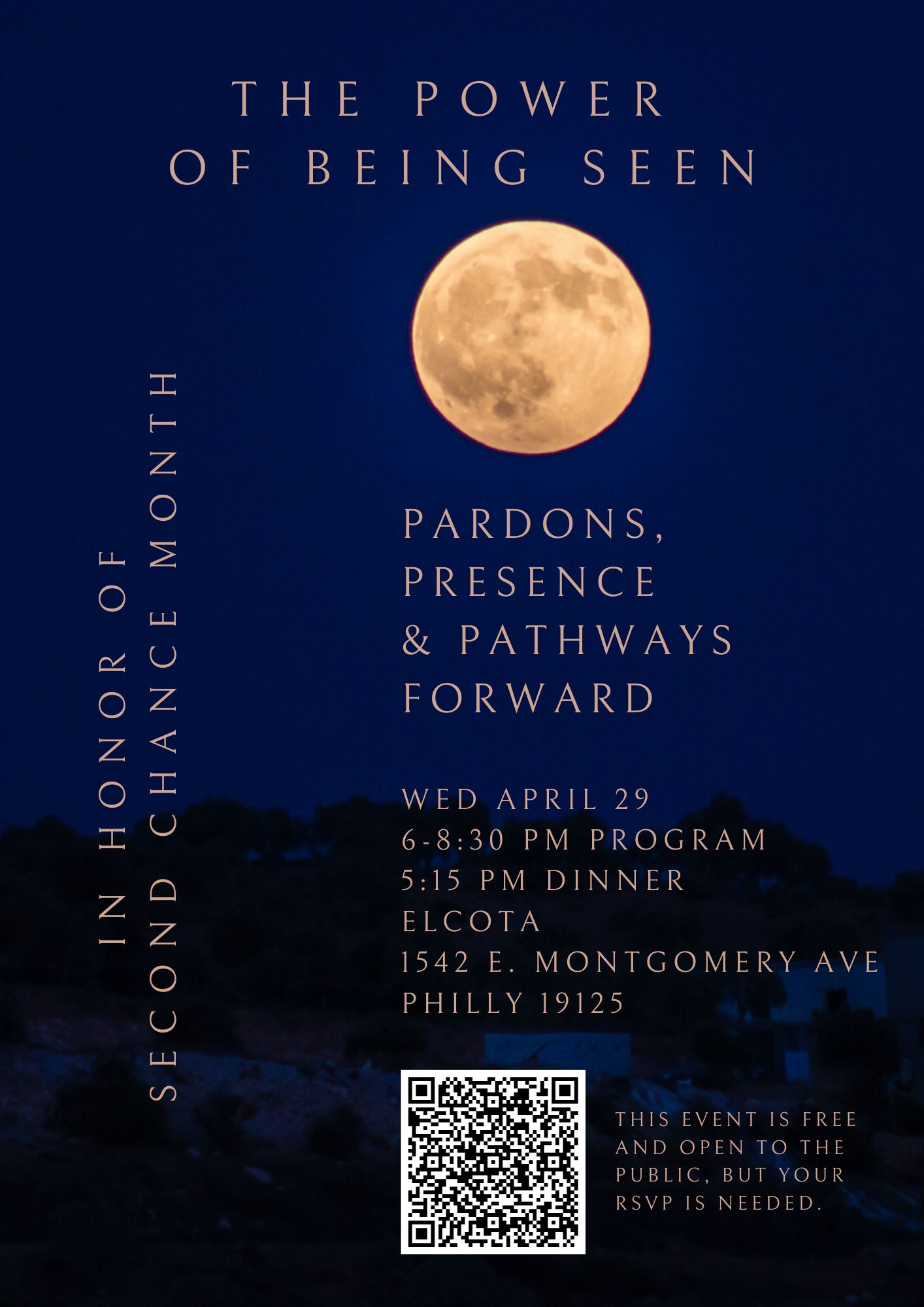 In honor of Second Chance Month, there will be a special program and dinner on April 29th titled “The Power of Being Seen: Pardons, Presence & Pathways Forward.” Scan the QR code above to register!