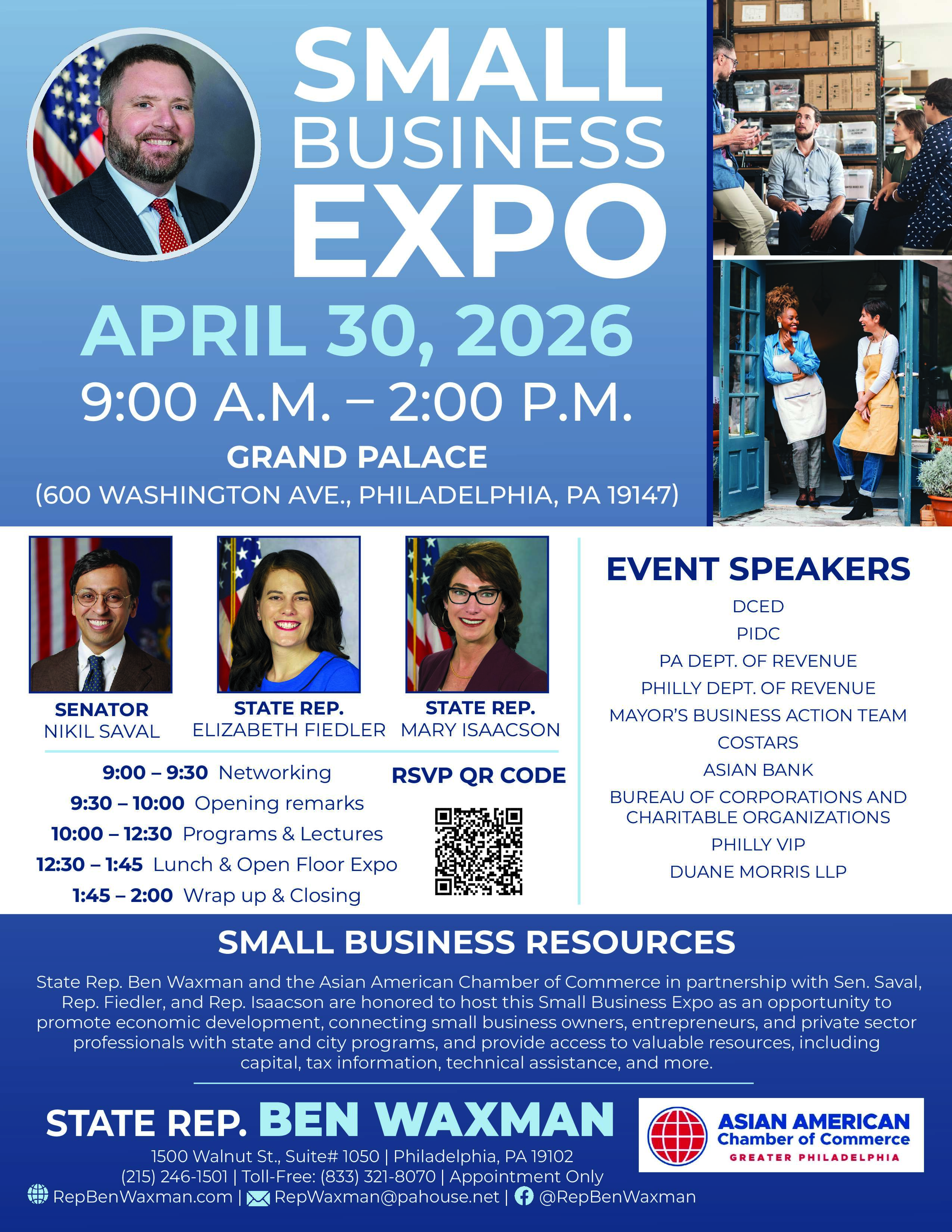 Come out to Rep. Ben Waxman’s Small Business Expo on April 30th, where my team will be ready to assist you with small business resources and connect you with a wide range of professionals.
