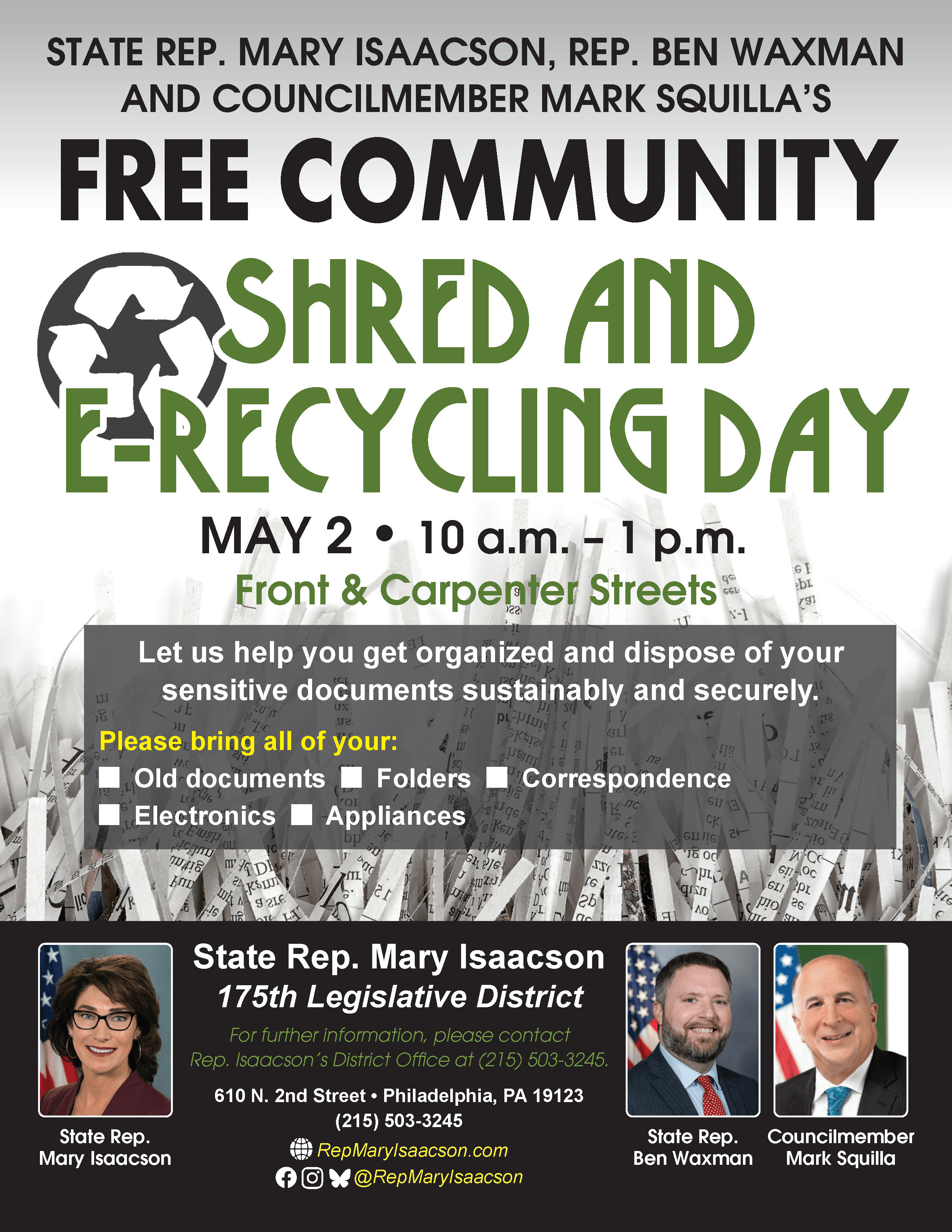 Upcoming Shredding & E-Recycling events