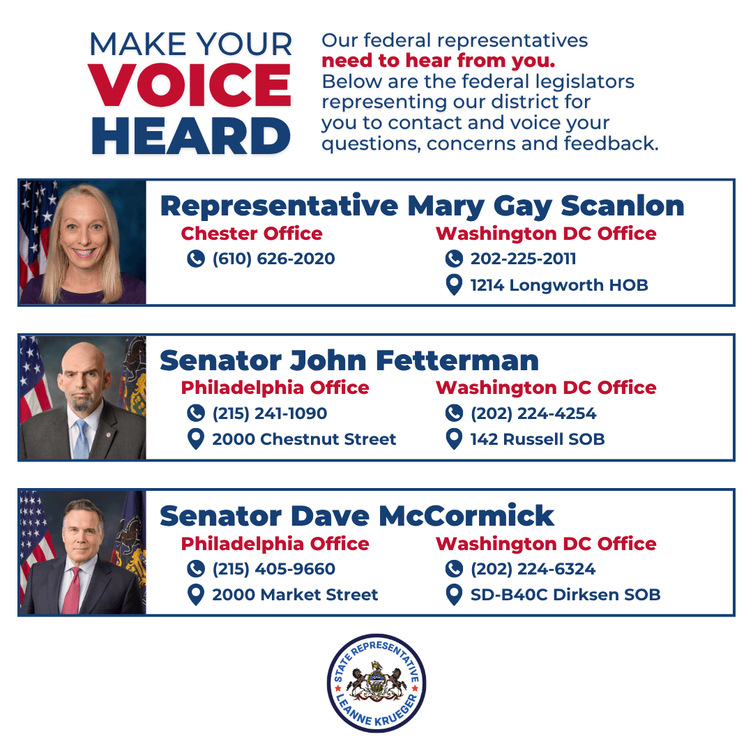Call 610-534-6880 or email RepKrueger@pahouse.net