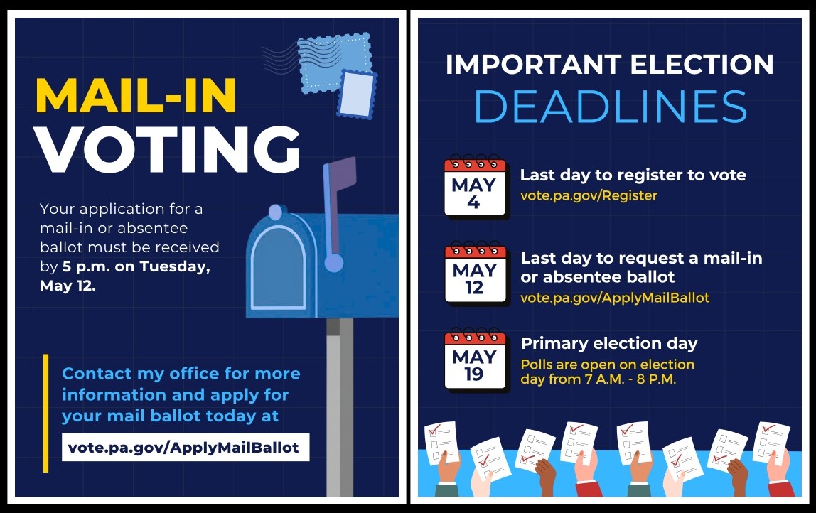 Mail-in ballots are a simple, safe, and secure way to make sure your voice is heard. To request your mail-in ballot, visit votespa.com.