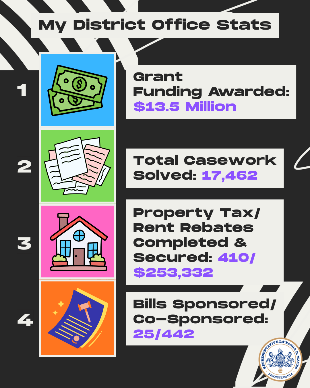 Over the past year, I worked hard to deliver meaningful results for our district through passing good legislation, Black maternal health advocacy, and dedicated constituent service.
