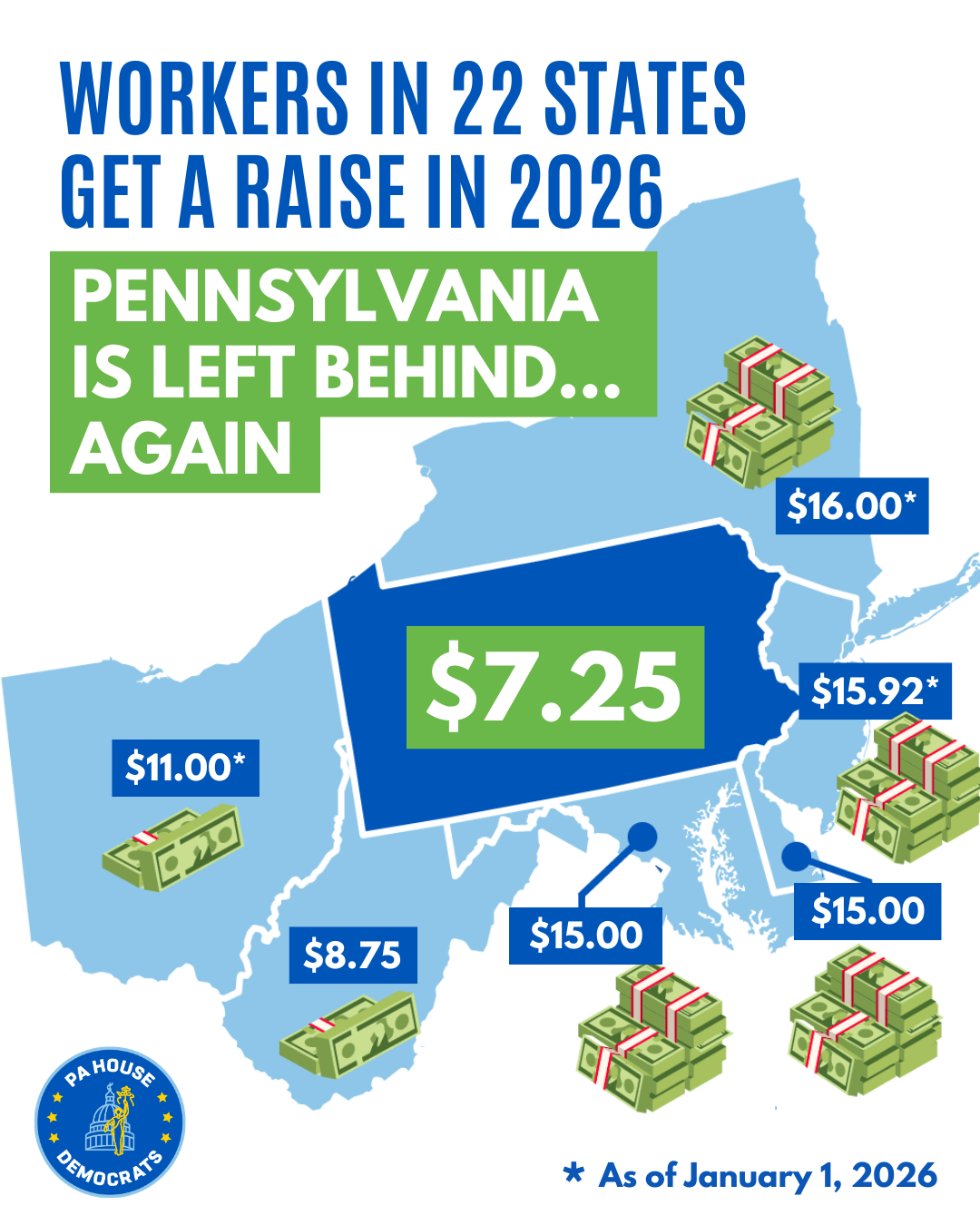 Corrupt billionaires and special interest conspire to keep PA’s workers tied for dead last in America on pay day – until now: It is time that we call out Senate leadership for their inaction on any of the minimum wage increase bills that we have passed in the house.