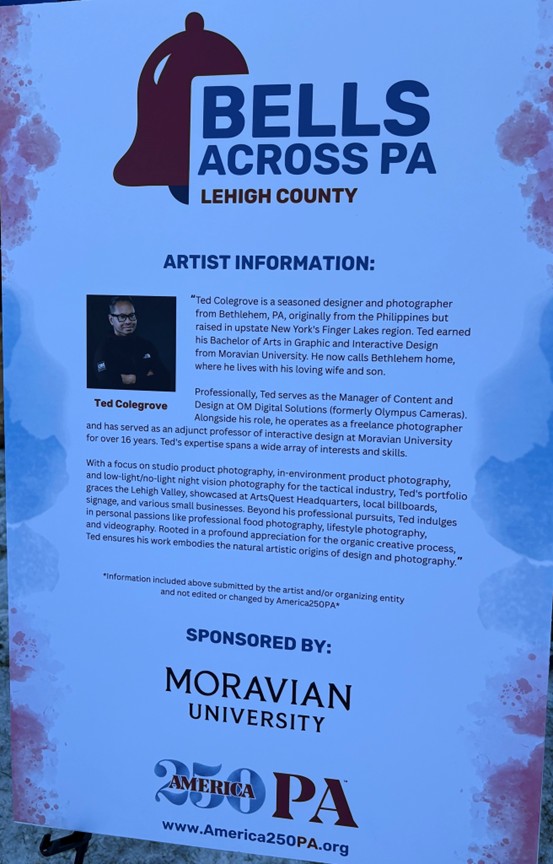 I was happy to take part in America250PA's and Moravian University's Sports Medicine and Rehabilitation Center Bells Across PA unveiling. Bells Across PA has given artists across the commonwealth the opportunity to decorate a three-foot fiberglass bell to commemorate America's upcoming Semiquincentennial.