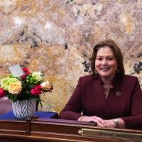 Rep. Jeanne McNeill attends the 2020 PA Farm Show.