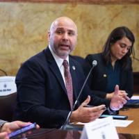 Rep. Bob Merski attends a House Democratic Policy Committee public hearing to discuss legislation that would address use of excessive force by law enforcement when effecting an arrest.