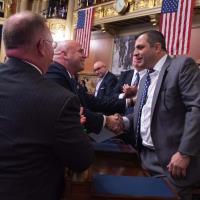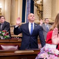 Rep. Bob Merski takes the Oath of Office to begin to start of the 2021-22 legislative session.