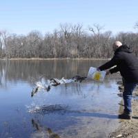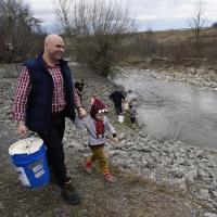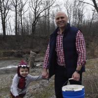 Rep. Bob Merski stocks trout in an Erie stream ahead of the start of fishing season.