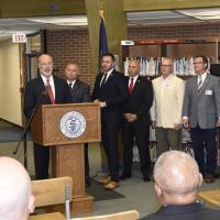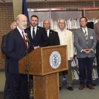 Rep. Bob Merski joins Governor Tom Wolf at an Erie elementary school to discuss improvements to the state’s charter school regulations.