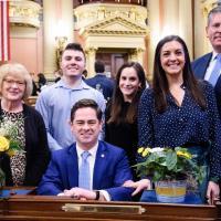 Rep. Kyle Mullins is joined by colleagues from both sides of the aisle, and advocates from the anti-bullying organization "Be the Change" to announce bipartisan anti-bullying legislation which would make chronic bullying a crime.