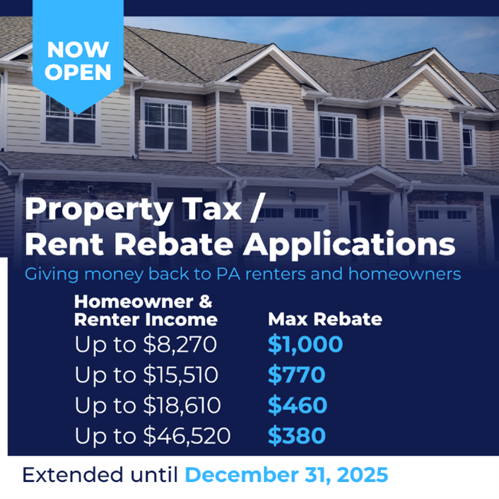 Pennsylvania’s Property Tax/Rent Rebate Program helps older friends and neighbors stay in their homes while affording life’s necessities, but the annual deadline for applications is approaching. The filing deadline is December 31. The program benefits eligible Pennsylvanians who are 65 or older, widows and widowers 50 or older, and people with disabilities 18 or older. Rebates range from $380 to $1,000.