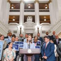 Philadelphia House Delegation leaders hold a press conference at City Hall in Philadelphia to respond to Governor Shapiro's budget proposal and discuss their priorities in the upcoming budget process.