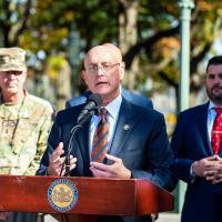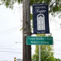 State Rep. Joe Webster joined by colleague Rep. Joe Ciresi, the PA State Police, Trappe Fire Company No. 1, and the family and friends of fallen trooper and chief firefighter Branden Sisca for dedication ceremony for Memorial Highway Dedication Ceremony.