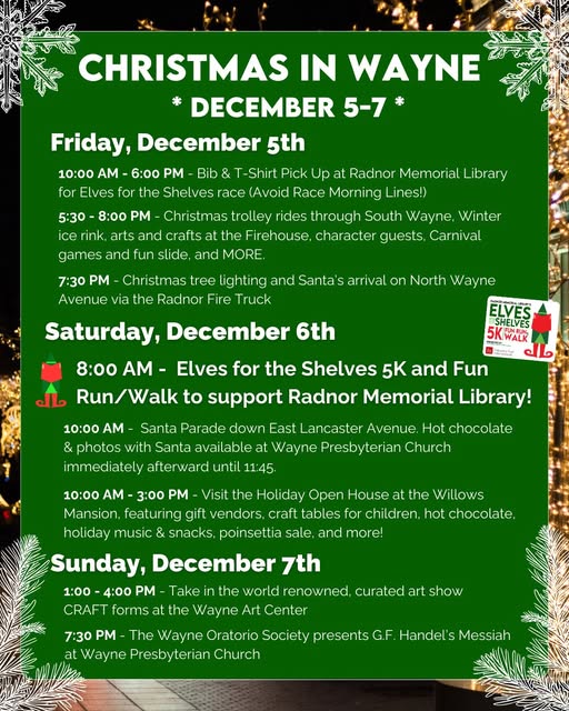 - Radnor Memorial Library Elves for the Shelves 5K Fun Run (Dec. 6)