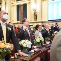 State Rep. Tim Brennan and state Sen. Steve Santarsiero recently visited Central Bucks Regional Police Department, which serves Chalfont, New Britain and Doylestown, to present $75,000 in state funding secured to purchase necessary equipment for the department’s expanding K9 Unit. The funds are expected to be used for a new vehicle outfitted for canine safety. The funding was granted by the state Department of Community and Economic Development.