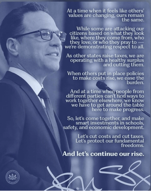 The governor outlined a plan focused on affordability, economic opportunity, and strong communities. His proposal aims to cut costs for working families without raising taxes, while making targeted investments designed to help every Pennsylvanian succeed. The plan emphasizes several key priorities: