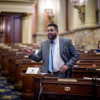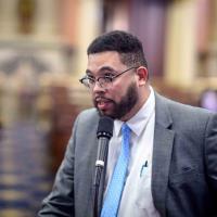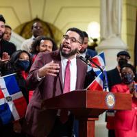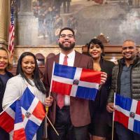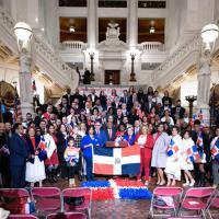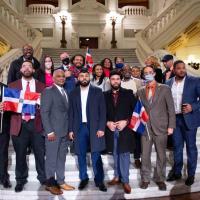 Rep. Manuel Guzman celebrates Dominican Independence Day at the State Capitol.