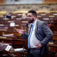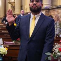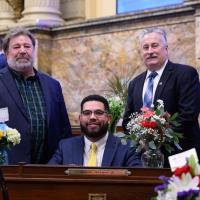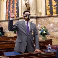 Rep. Manuel Guzman participates in the First Tuesday Ceremony and is sworn in as the state representative from the 127th legislative district for the 2021-22 legislative session.