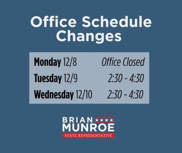 I hope you found this edition of my e-newsletter useful. I’d love your feedback on what parts you find valuable and how we could improve – please email your thoughts to me at RepMunroe@pahouse.net.