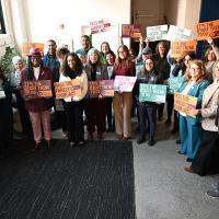 Rep. Lindsay Powell is joined by the Women & Girls Foundation of Southwestern Pennsylvania at a news conference she hosted to promote the Family Care Act, which proposes statewide paid family and medical leave insurance programs.