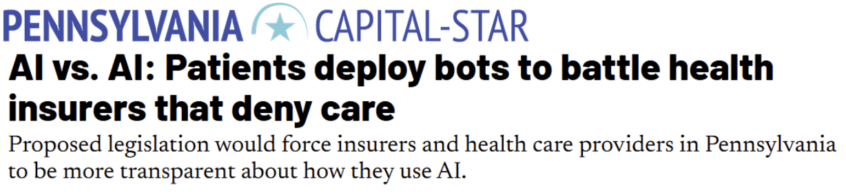 I am proud to be working with a bipartisan group of my colleagues on H.B. 1925 to regulate AI’s usage in healthcare to ensure transparency, human decision making, and minimizing bias. You can read more about my legislation in the Pennsylvania Capital-Star.