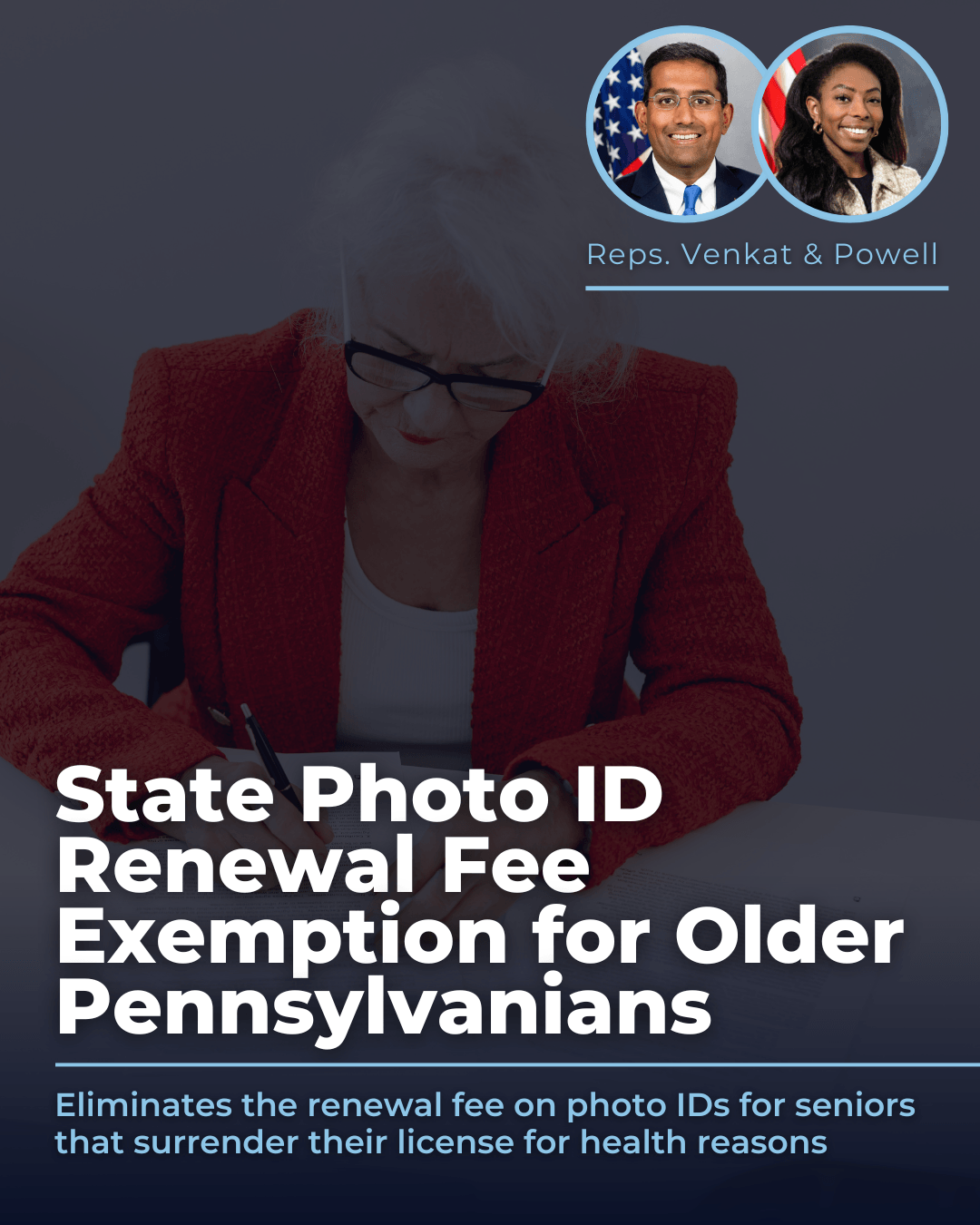 That’s why I am proud to partner with Rep. Lindsay Powell on legislation that would remove this unnecessary financial burden on older Pennsylvanians. You can read our proposal for this legislation here.