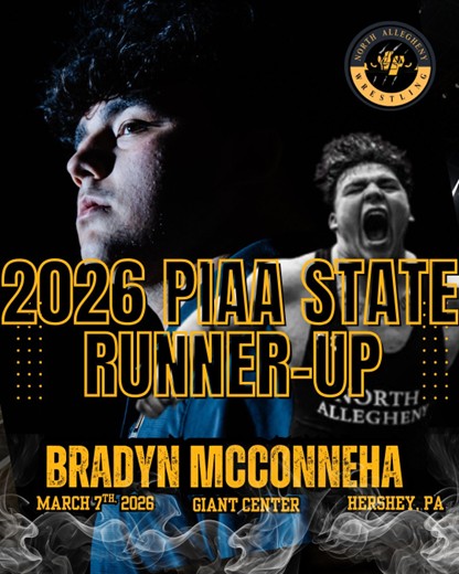 Bradyn McConneha from North Allegheny capped off his high school wrestling career in Hershey by placing second at the PIAA Championship.