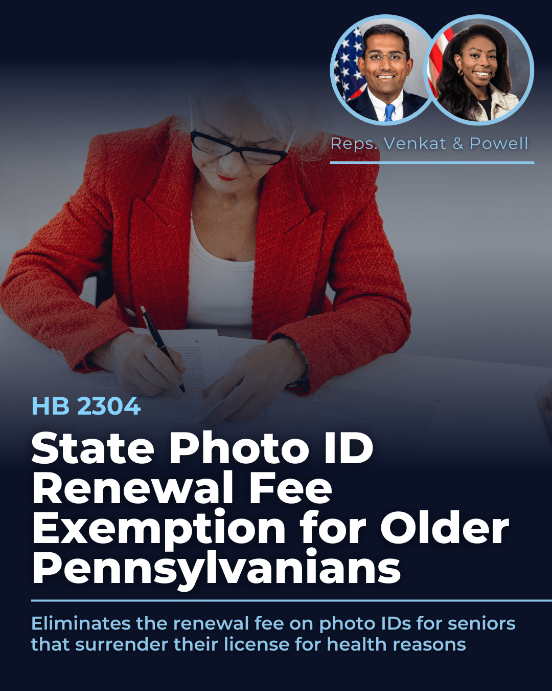 That’s why I am proud to partner with Rep. Lindsay Powell on legislation that would remove this unnecessary financial burden on older Pennsylvanians. This week, we formally introduced the bill as H.B. 2304, and you can learn more about it here.